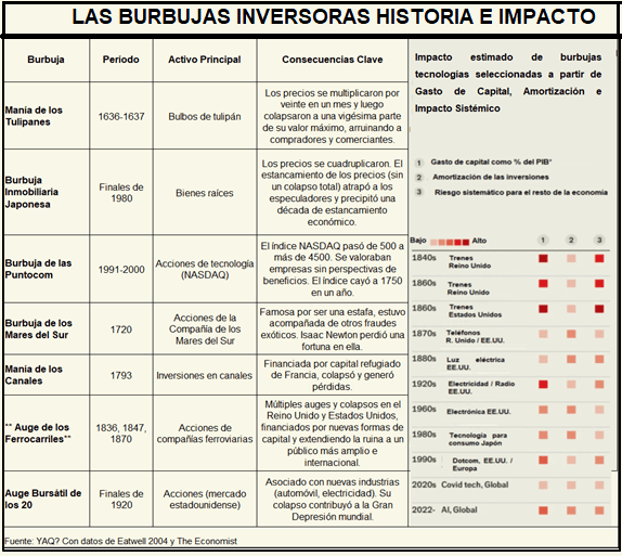 Los economistas, Jared Bernstein y Ryan Cummings en la columna publicada en el New York Times (14/10/2025) definen que “Una burbuja se produce cuando el nivel de inversión en un activo se distancia persistentemente de la cantidad de beneficios que ese activo podría generar”. Ese activo es la IA, no otra cosa.