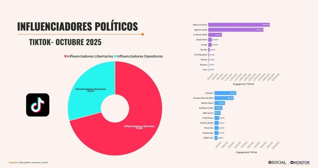 Así y todo, resulta que esta fauna silvestre opositora logra ocupar entre el 30 y el 40% del espectro de influenciadores en el territorio digital acerca de la política nacional.